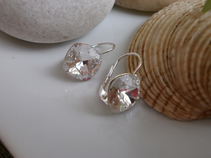 Náušnice stříbrné klapky Fancy Stone v kombinaci se Swarovski. Barva Crystal. Možno i v jiných barvách.