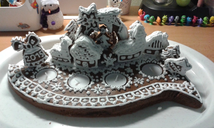 Pernickova dekorace pro mou kamaradku z jedleho perniku zdobeno bilkovou polevou na prani.Delka slzy 35cm.Zabaleno v celofanu na dvojite kartonove tvrde podlozce kvuli vaze.