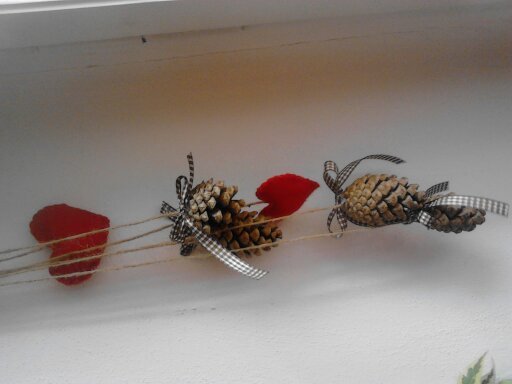 K zavěšení. Ze šišek, filcových srdéček a mašliček