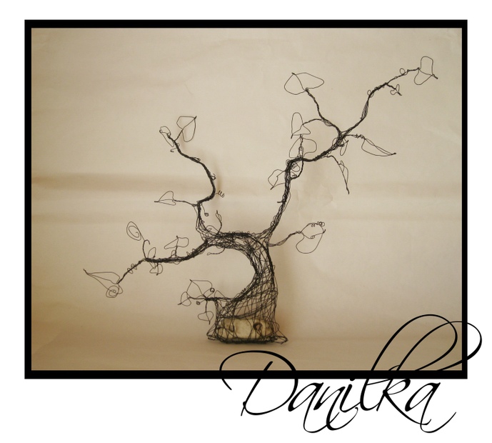 Lipka je z železného černošedého drátu. S srdci kmene je kámen.