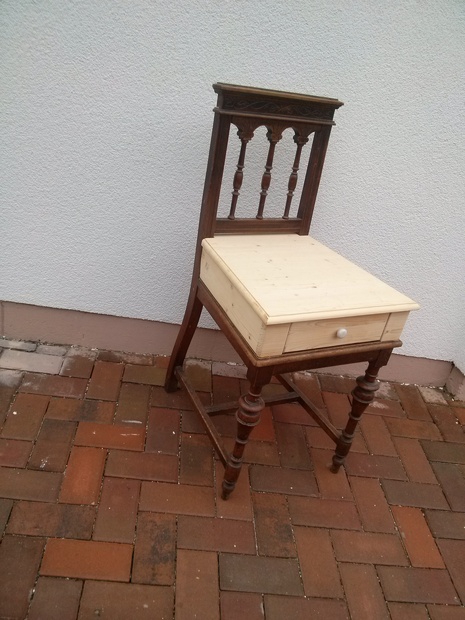 ANO, TO CO VIDÍTE JSOU LETITÉ ŽIDLE ZACHRÁNĚNÉ PŘED SPÁLENÍM V KOTLI...KDYŽ JSEM ZA NĚ LIDEM DÁVALA 500 KČ TAK SI TUKALI NA ČELO...DLOUHO TU STÁLY BEZ VYUŽITÍ..BYLY OPRAVDU ,,K NIČEMU,,..STARÉ, ROZVIKLANÉ, ČERVIVÉ, S DĚRAVÝM ROZBITÝM SEDÁKEM...ALE I TAK JSEM VĚDĚLA, ŽE JE NUTNÉ JE ZACHRÁNIT...DLOUHO JSEM HLEDALA NĚJAKÉ NOČNÍ STOLKY DO LOŽNICE A HLE!!!!
