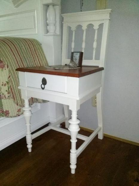 ANO, TO CO VIDÍTE JSOU LETITÉ ŽIDLE ZACHRÁNĚNÉ PŘED SPÁLENÍM V KOTLI...KDYŽ JSEM ZA NĚ LIDEM DÁVALA 500 KČ TAK SI TUKALI NA ČELO...DLOUHO TU STÁLY BEZ VYUŽITÍ..BYLY OPRAVDU ,,K NIČEMU,,..STARÉ, ROZVIKLANÉ, ČERVIVÉ, S DĚRAVÝM ROZBITÝM SEDÁKEM...ALE I TAK JSEM VĚDĚLA, ŽE JE NUTNÉ JE ZACHRÁNIT...DLOUHO JSEM HLEDALA NĚJAKÉ NOČNÍ STOLKY DO LOŽNICE A HLE!!!!
