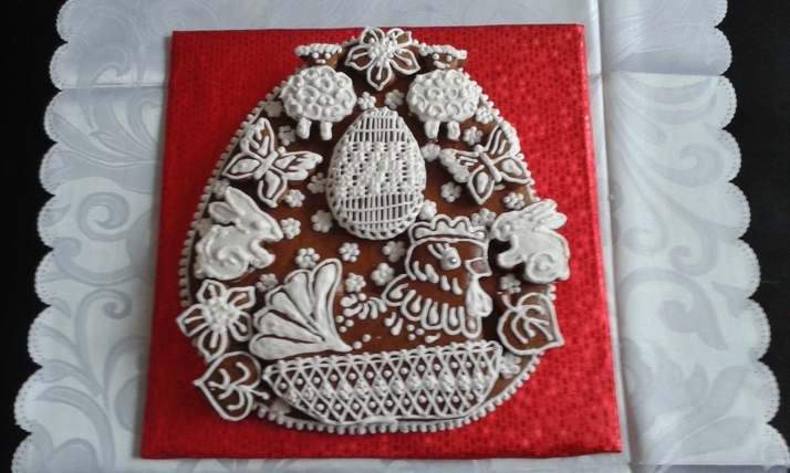 Pernickova dekorace vysoka 28cmx24cm zdobena cukrovou polevou.Zabaleno v celofanu na tvrde podlozce z kartonu.