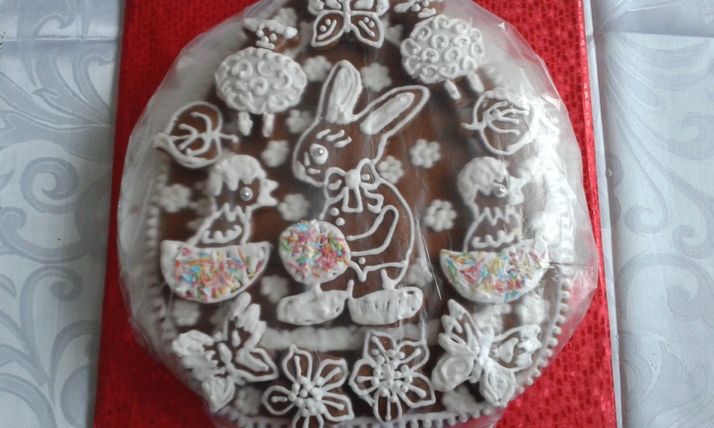Pernickova dekorace vysoka 28cm x 24 c. Zabaleno v celofanu na tvrde podlozce.