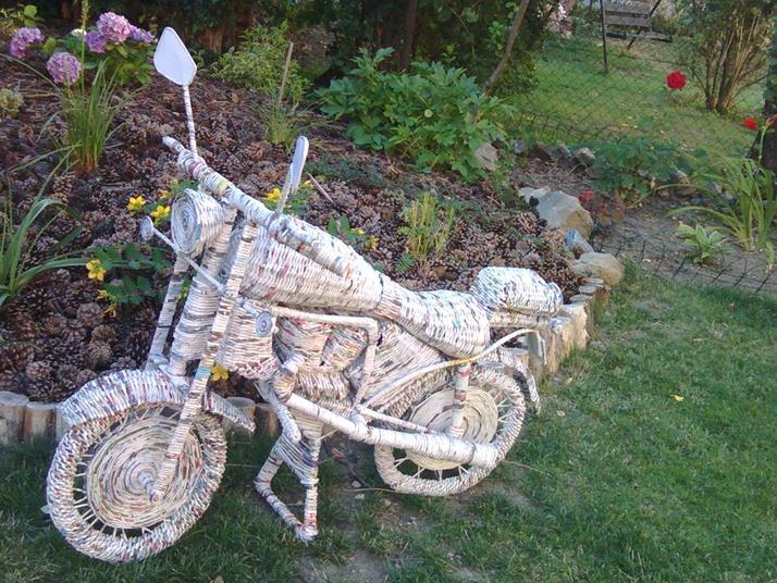 motorka s otočnými kolečky a pohyblivými řídítky. Vysoká cca 1m.