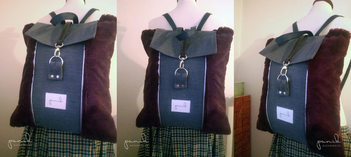 Unikátní baťoh pro mojí milovanou dcerku, vytvořen jako dárek k narozeninám. Kombinace pevné potahové látky, koženky, kůže, kovu, polyesteru a bavlny. Vystužený, se zapínáním na zip a magnet.