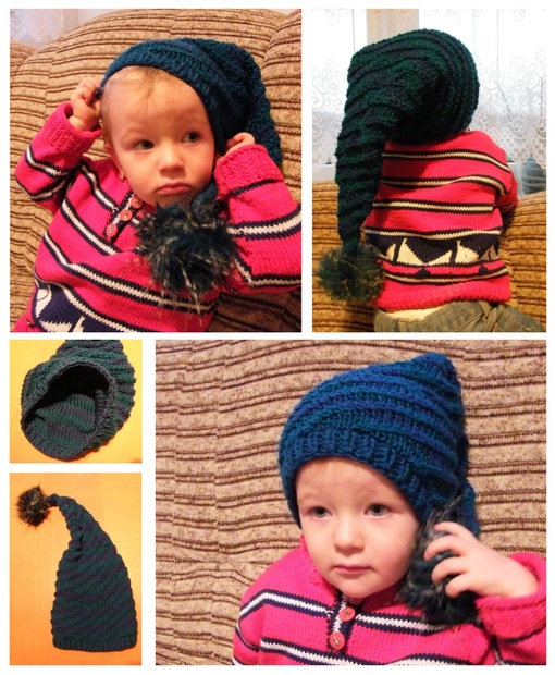 Pletuschopné ocení podšívku. Ostatní pak roztomilost modelky. Pleteno na kulatých jehlicích přízí Vlnap Merino (50% merino vlna, 50% akryl). Spirálový vzor tvořen jednoduchým střídáním 4 hladce a 2 obrace, který se každou řadu posune vždy o jedna. Ujímala jsem tak, aby pozvolna splynuly dvě spirály v jednu - působilo nejméně násilně :)