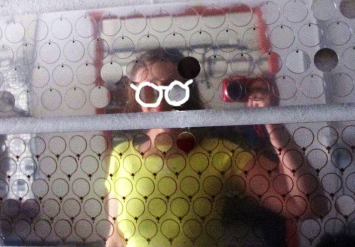 přívěsky z nerezové oceli ještě v tabuli, před ručním leštěním