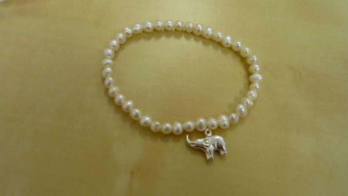 Přírodní říční perly náramek, se stříbrným slonem Ag925:120+ 60 slon= 180.