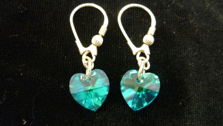 MOdrozelené srdce SW křišťál ve stříbrném uzavřeném afroháčku Ag925, cena 140,-