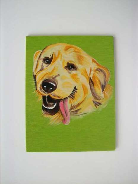Ručně malovaný obrázek na dřevěnou překližku, přelakováno, ještě bude doplněn jménem pejska :-)