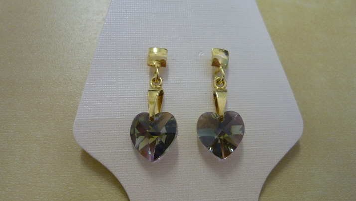 Pozlacené stříbrné náušnice se srdcem odstín černý diamant, s odlesky. Cena 250,-