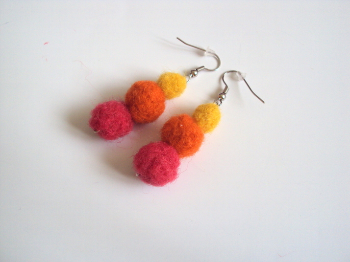 náušky z barveného ovčího rouna, měkké a příjemné na nošení