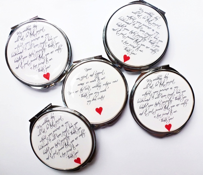 zrcátka s textem na přání pro družičky, svědkyně, svatební maminky