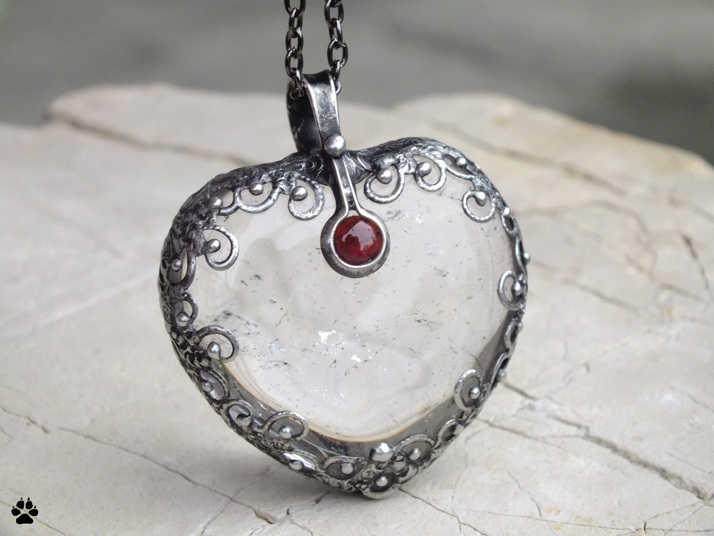 srdce křišťál,granát,drát,kůže
