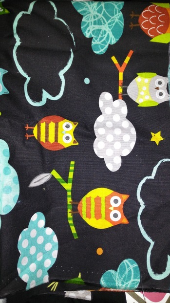 100% bavlna, sovy na černém podkladě.
