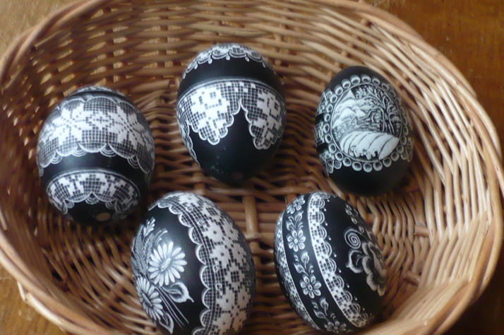 kraslice ručně škrabané podle původní lidové tvorby na Valašsku