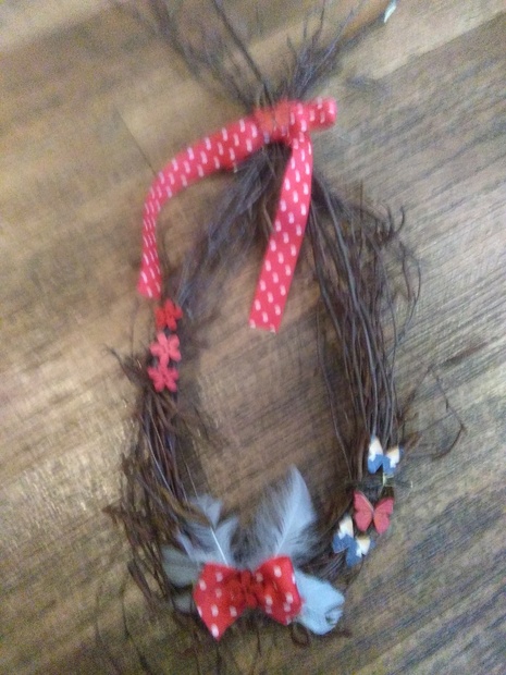 věněc červený - 105,- (nožno vyrobit různé barvy: červené, sv. růžová, zelená, žlutá, oranžová, 2 tvary - kulatý a nebo slza)