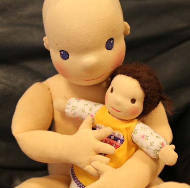 Demonstrační panenka (70 cm) pro Dětskou rehabilitaci v Pardubicích s malou mazlinkou (27 cm)