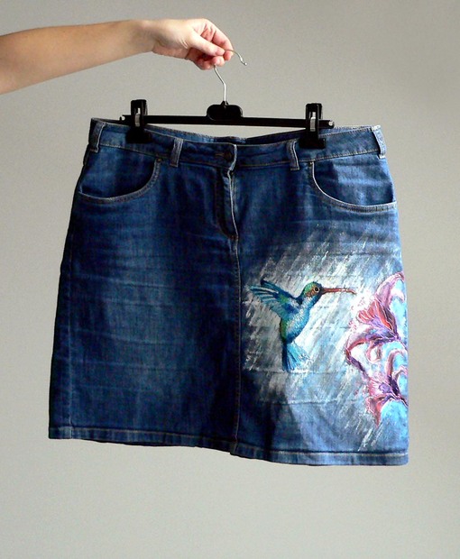 Ruční malba kolibříka na sukni, kterou si zaslala sama zákaznice, viz zboží http://www.fler.cz/zbozi-prodane/malba-sukne-na-zakazku-pro-pavlu-2001099