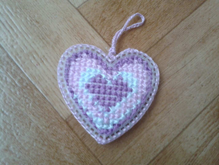 Srdíčko vyšité z obou stran na zavěšení, cena 39,- Kč. Délka 7 cm, šířka 8 cm.