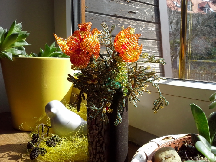 Jarní kytičky z korálků.