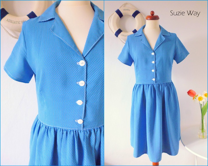 Košilové šaty retro střihu. Živůtek je vypasovaný, tvarován záševky, sukně je řasená. Na šatech je funkční propínání, v boku na zip.