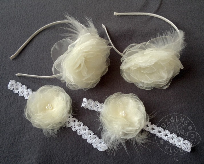 Čelenky pro mini i větší družičky na svatbu v barvě champagne.