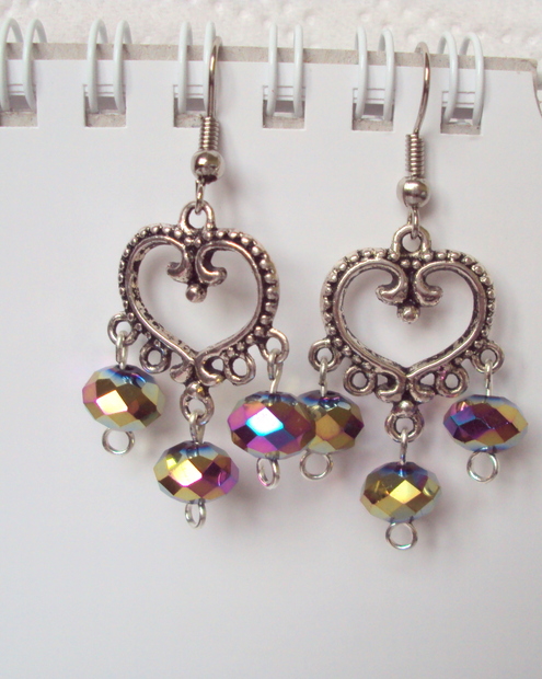 Srdíčka v barvě starostříbrné s duhovými kovovými korálky