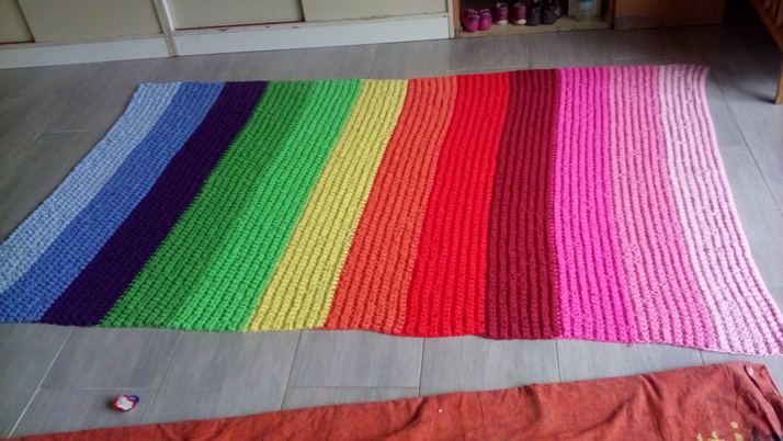 duhová deka nebo přehoz lze zhotovit v jakékoli barevné kombinaci i velikosti