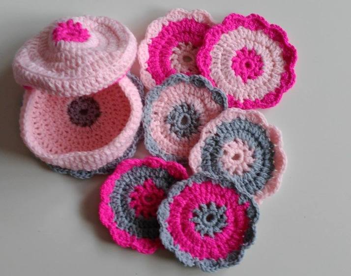 Háčkované podtácky v "dózičce" - 230,-