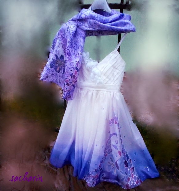 Šála Habotai 12 a šaty chiffon,malované Hedvábní