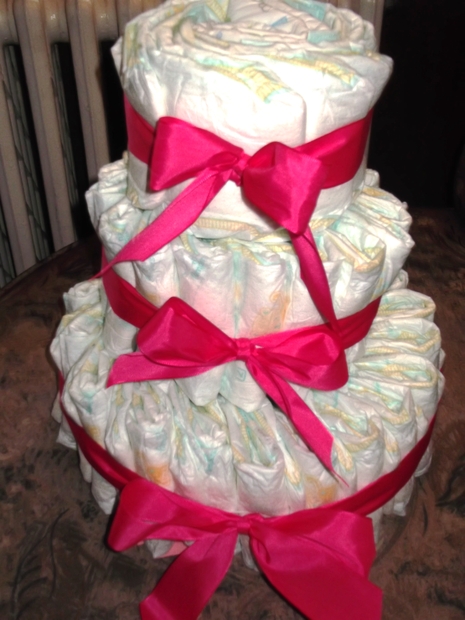 Ideální dárek k narození miminka, kromě plínek je většinou doplněn o pletené bačkůrky či lahvinku pro tatínka.