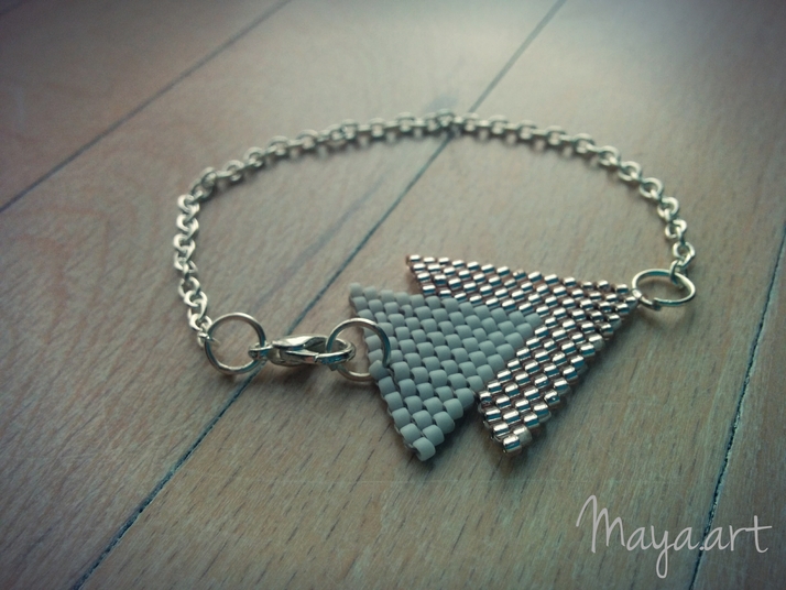 Šitý stříbrnobílý náramek vyrobený šití korálků technikou "brick stitch" z TOHO rokajlu.