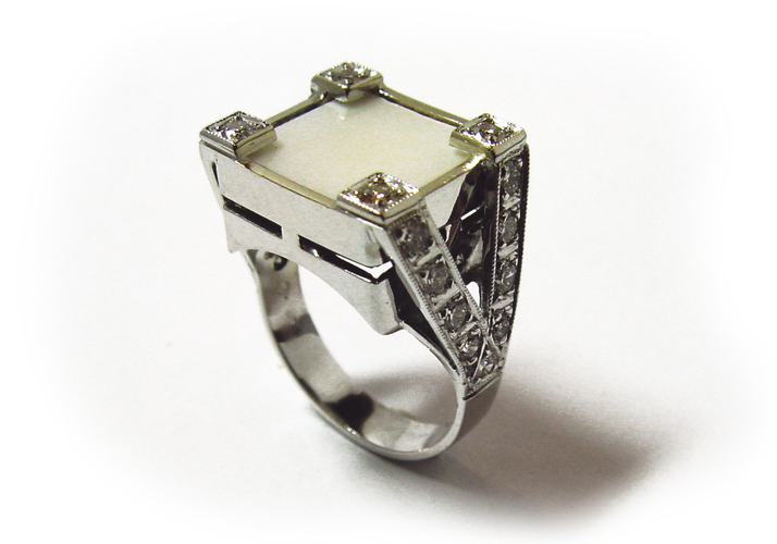 prsten z bílého zlata s perletí a brilianty