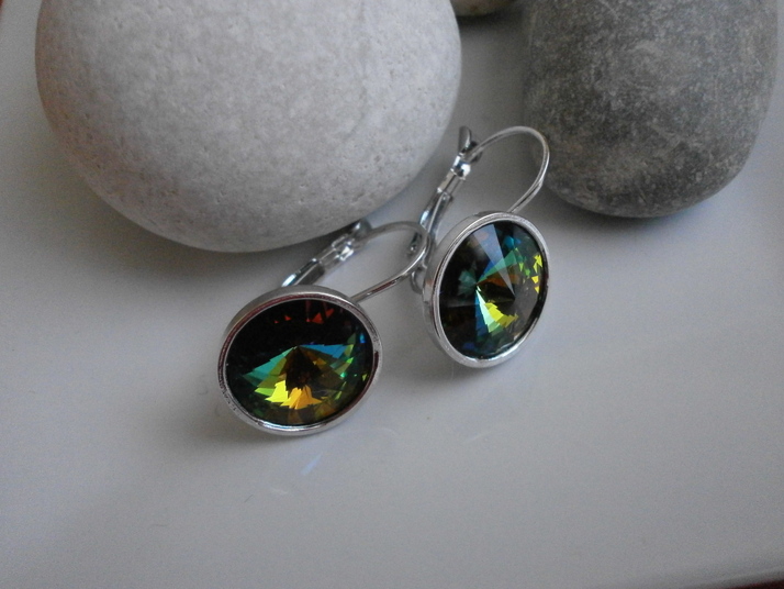 Náušnice klapky z materiálu Rhodium v kombinaci se Swarovski- barva Crystal Vitral Medium. Možno i v jiných barvách.