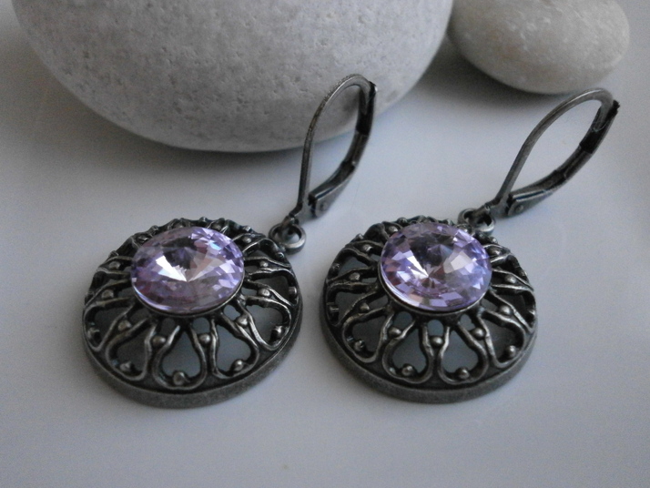Starostříbrné náušnice klapky s kameny Swarovski - barva fialová Violet. Možno i v jiných barvch.