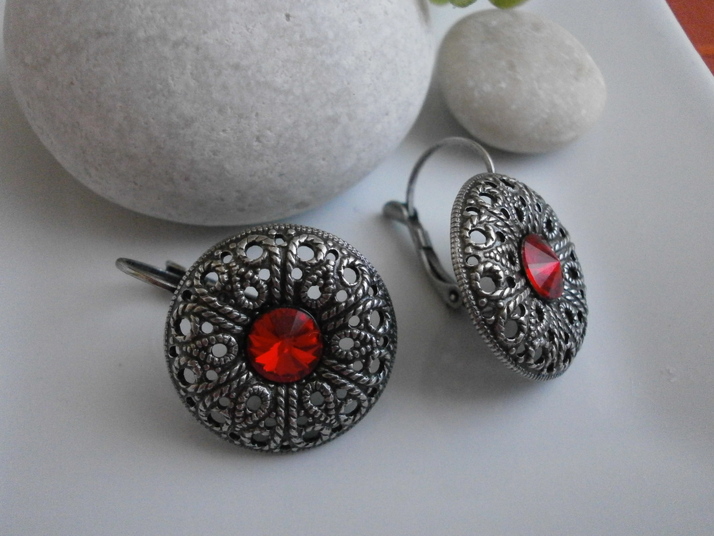 starostříbrné náušnice klapky Venuše v kombinaci se Swarovski barva červená Ligh Siam.Možno i v jiných barvách.