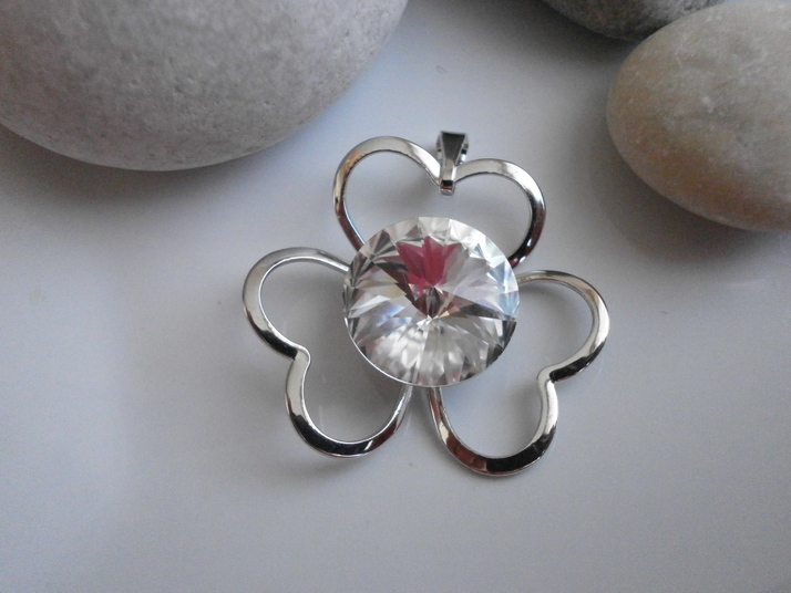 Přívěs Trojlístek- z materiálu rhodium barvy Crystal. Možno i v jiných barvách.