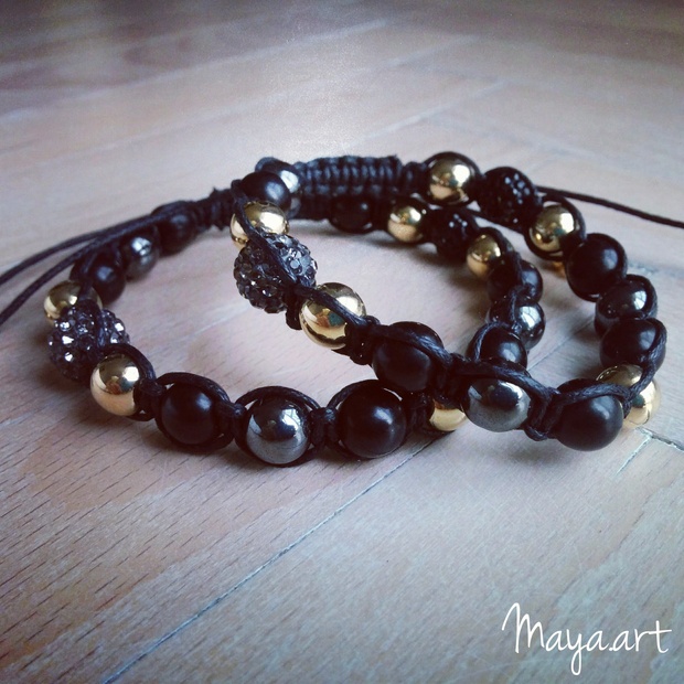 Drhaný náramek je vyroben z shamballa, skleněných a kovových korálků.