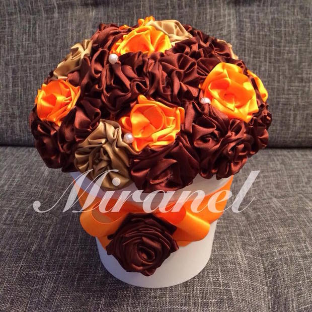 Saténová kytice v květináči