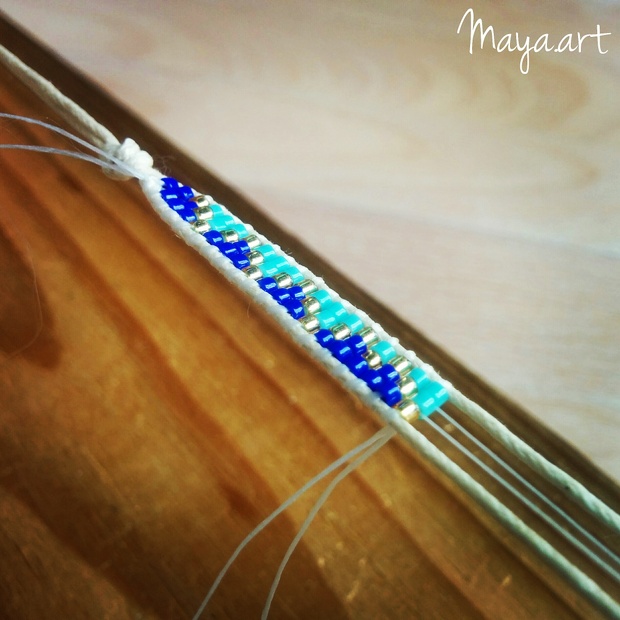 Náramek je tkán pevnou NYMO nití na bavlněnou šňůru rokajlem TOHO.