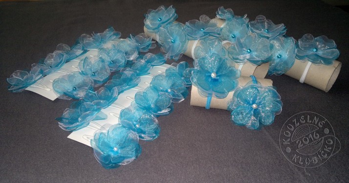 Sponky a gumičky vyrobené na oslavu ve stylu Ledového království.