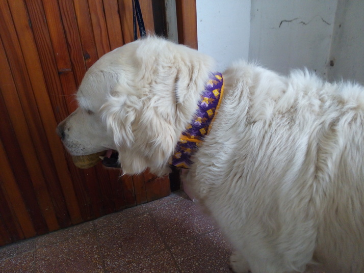 47cm, polyesterový popruh, plastová spona 6x8cm, suchý zip(úprava:lze zvětšit o pár cm ), kovová spona na uchycení vodítka