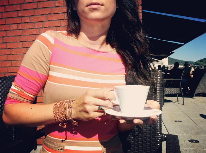 Wrap náramky omotávájící zápěstí v kombinace hnědé, růžové a oranžové.