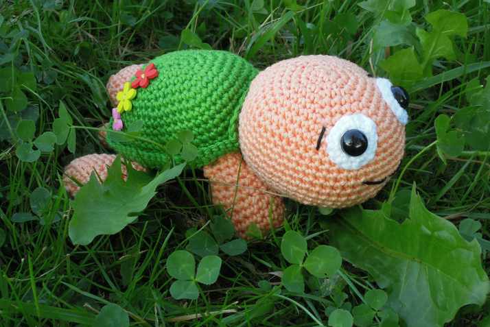 Želvinka podle návodu od "Dione" a ozdobená knoflíčky od Dominok
