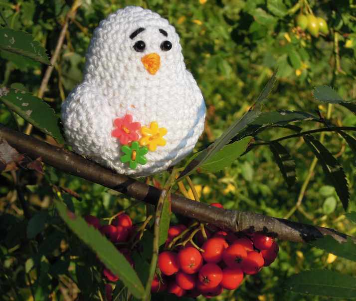 Ptáček podle návodu od "Kamlin" a ozdobený knoflíčky od "Dominok"