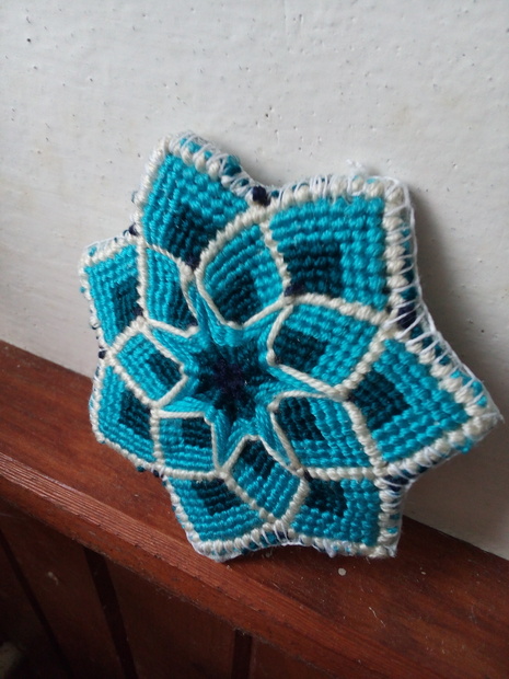 macramé, akryl, podšito bílou kůží, sponka do vlasů 6cm