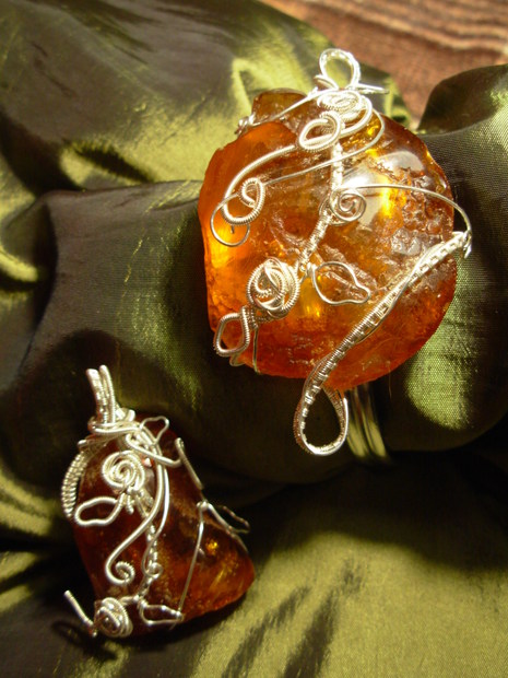 Přívěsek a náramek zdobený postříbřeným drátkem. Vše na přání zákazníka.