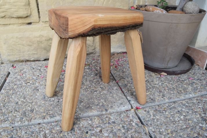 třešeň,jasan. Nohy rozklínované ve válcové díře(foxtail), ošetřeno lněným olejem.